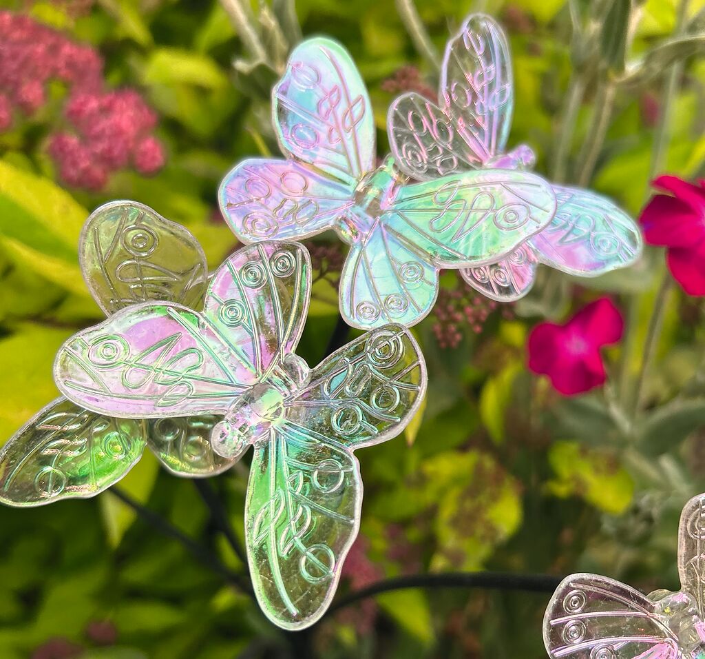 | Maße | Schmetterling Breite: ca. 6,4 cm Gesamthöhe mit Spieß: ca. 74 cm |