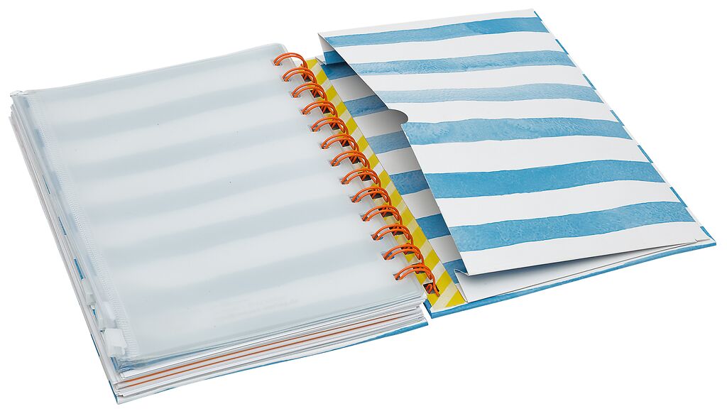 + handliches Format mit Gummiband und Spiralbindung
