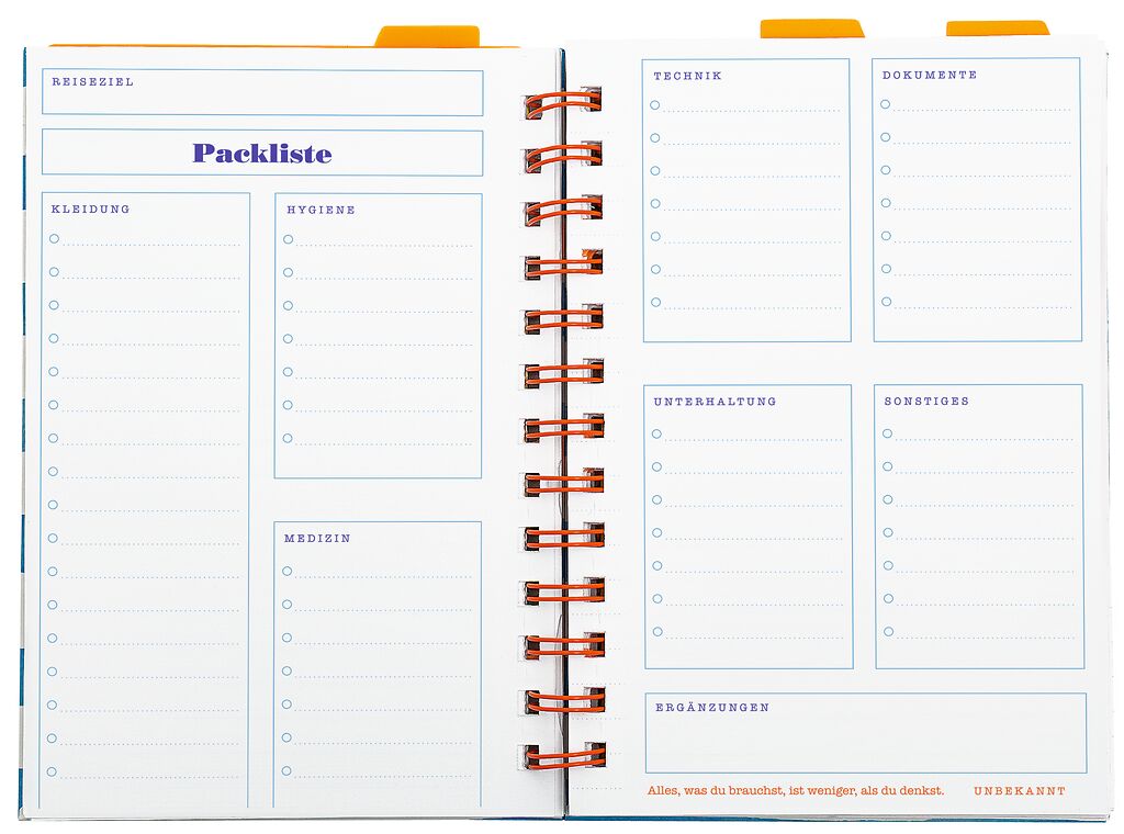 + mit Packliste, Reisetagebuchseiten und Notizbereich