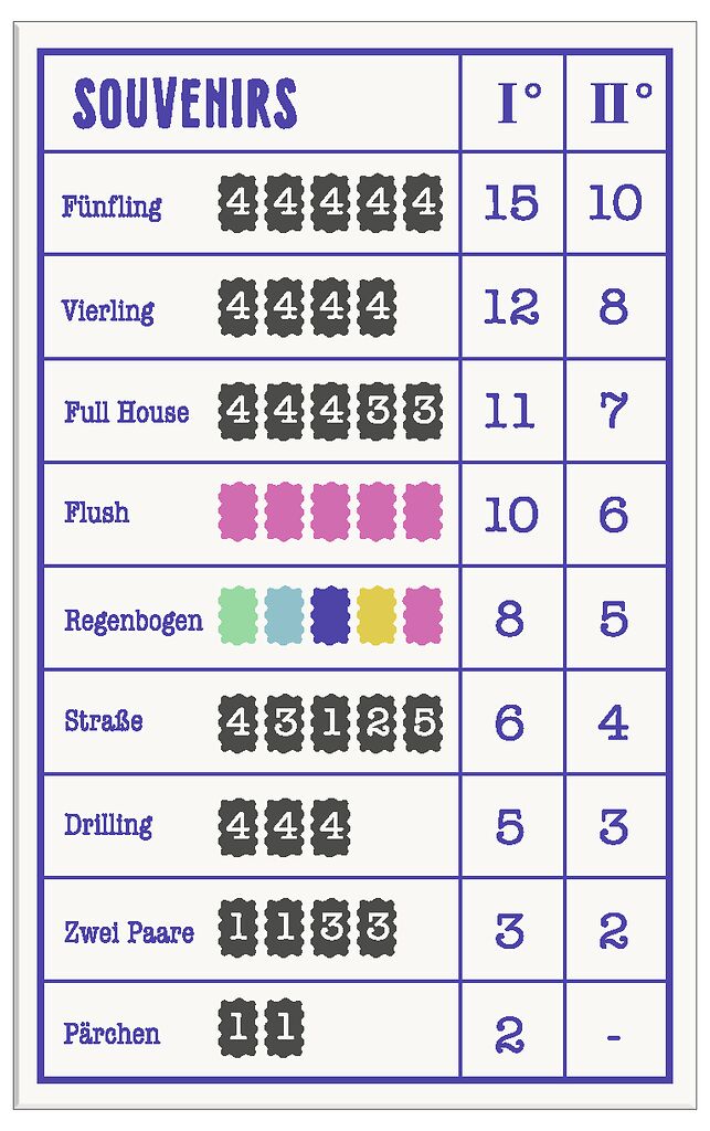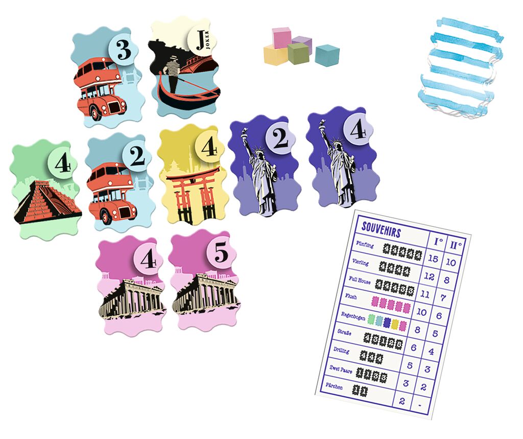 Ob zu zweit oder in größerer Runde: „Souvenirs" ist schnell erklärt, kompakt verpackt und damit ein ideales Mitbringsel für Reisen und Spieleabende.