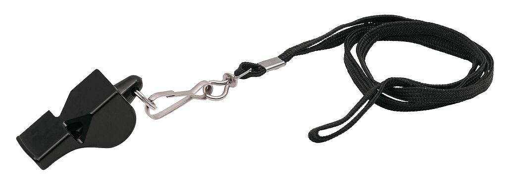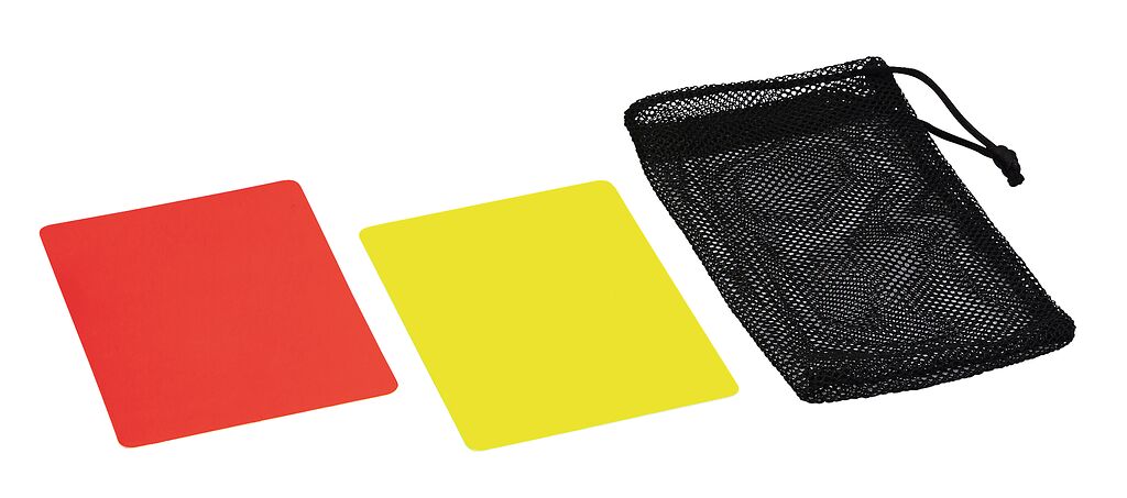 + enthält alles, was echte Schiris brauchen: Pfeife mit Band, gelbe und rote Karte