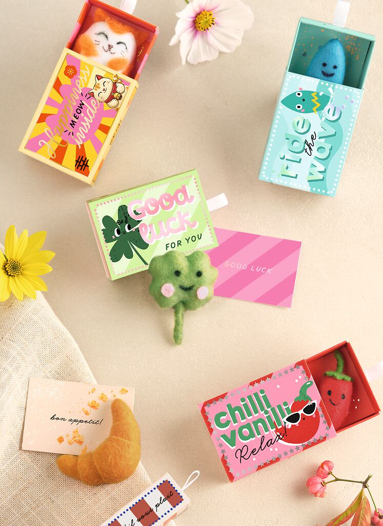 Ob Glücksbringer, Aufmunterung oder einfach ein lieber Gruß: Diese farbenfrohen Mini-Geschenkboxen enthalten ein niedliches Filzfigürchen und eine passende Botschaft zum Herausziehen. Jede Box ist mit Metallic-Effekten veredelt und steckt voller guter Laune.