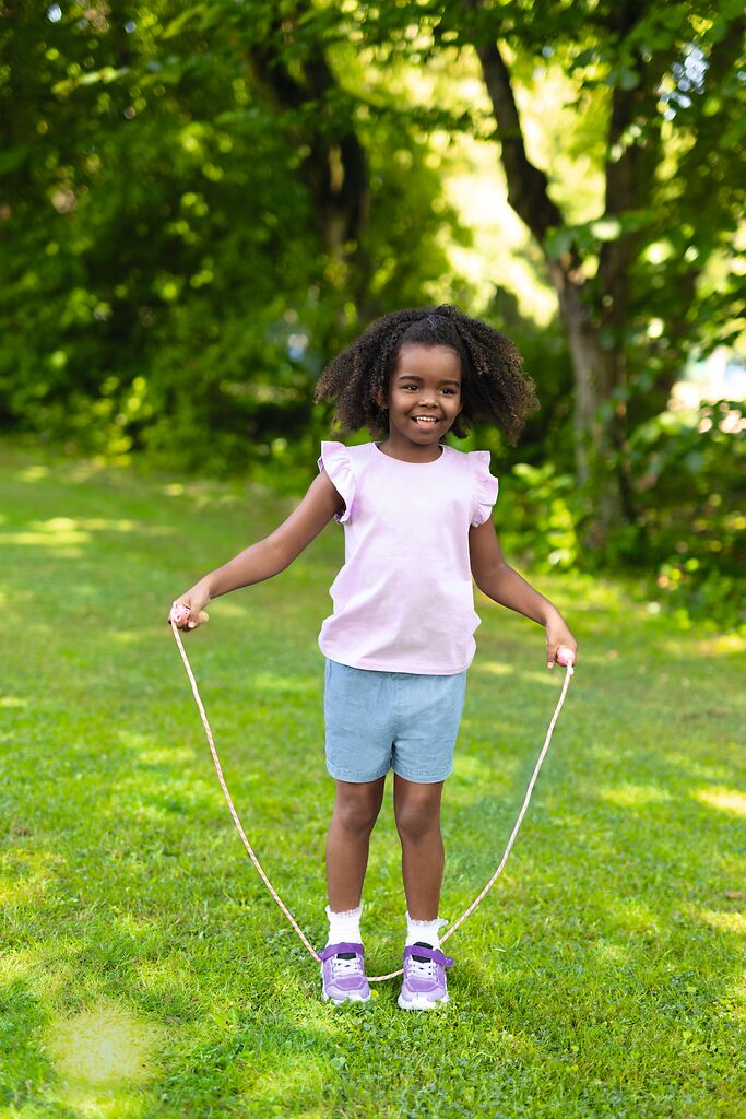 Dieses liebevoll gestaltete Springseil sorgt für Bewegung und Spielspaß in einem. Die robusten Holzgriffe sind mit niedlichen Filzöhrchen verziert und bieten einen sicheren Halt. Das Baumwollseil kann dank der praktischen Löcher in den Griffen individuell in der Länge angepasst werden.