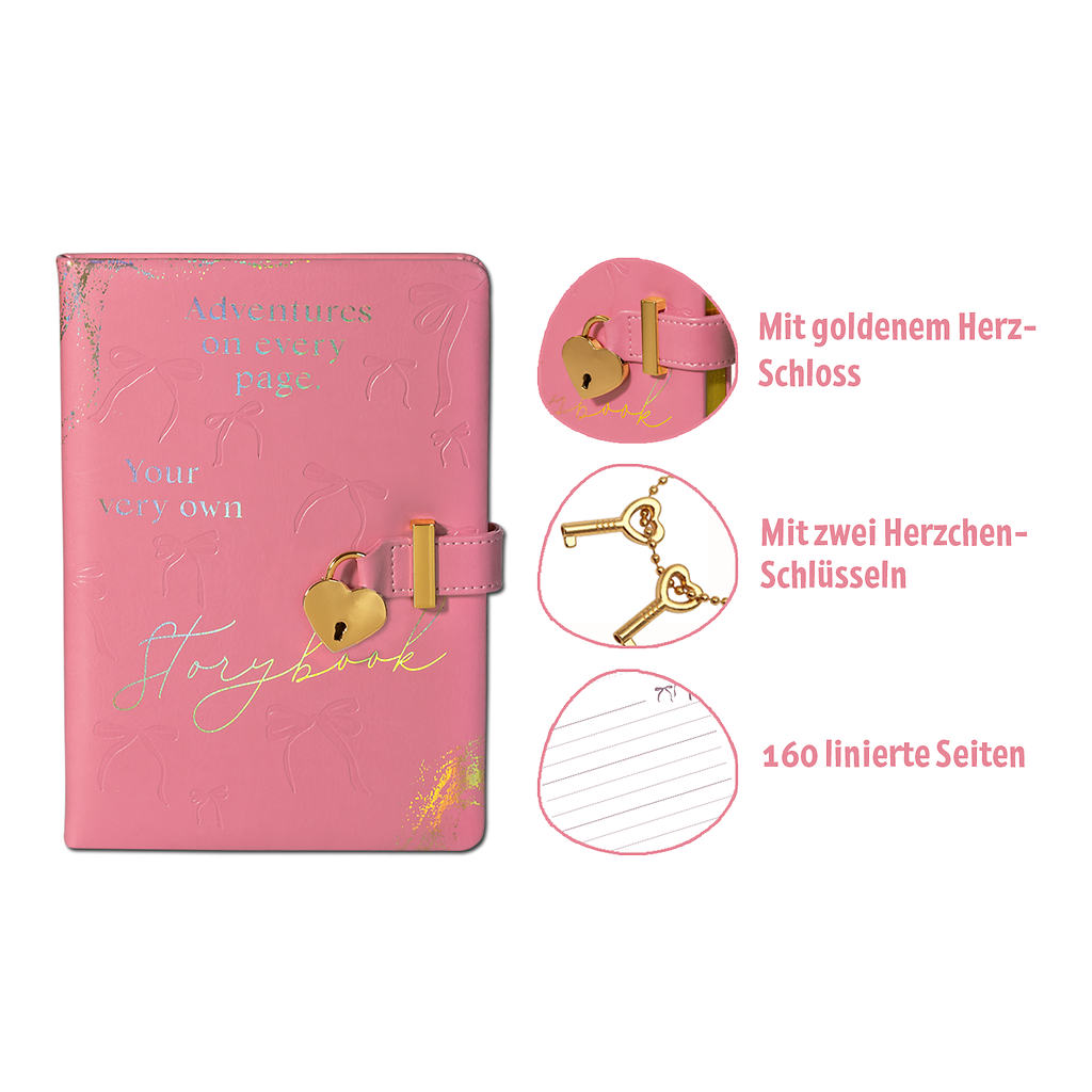 Ob als Tagebuch, Book Journal oder Notizbuch für kleine Abenteuer – das hochwertige Cover und die romantischen Details machen es zu einem echten Lieblingsstück. 160 linierte Seiten bieten viel Raum für Erinnerungen, Ideen oder deine ganz eigene Geschichte.