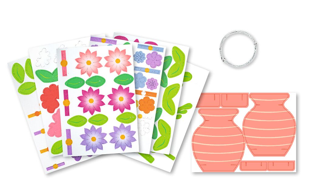 Mit diesem Set entstehen im Handumdrehen frühlingshafte Papierblumen, die sich ideal als Deko oder liebevoller Ostergruß eignen. Die vorgestanzten Blüten und der beigefügte Blumendraht machen das Basteln kinderleicht. Besonders schön: die Papp-Vase zum Zusammenstecken bringt das Blumenarrangement perfekt zur Geltung.