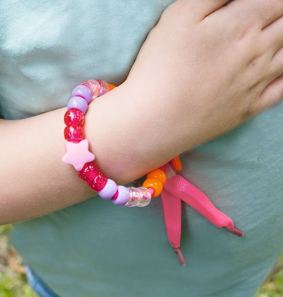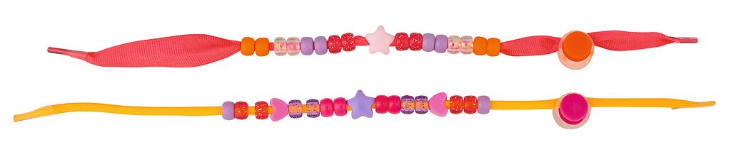 Mit diesem Set entsteht im Handumdrehen fröhlicher Schmuck – ideal für kreative Nachmittage oder als kleine Geschenkidee. Die Perlen in verschiedenen Formen und Farben lassen sich leicht auffädeln, der größenverstellbare Verschluss sorgt für guten Halt. Für endlosen Bastelspaß lassen sich die Armbänder jederzeit neu zusammenstellen.