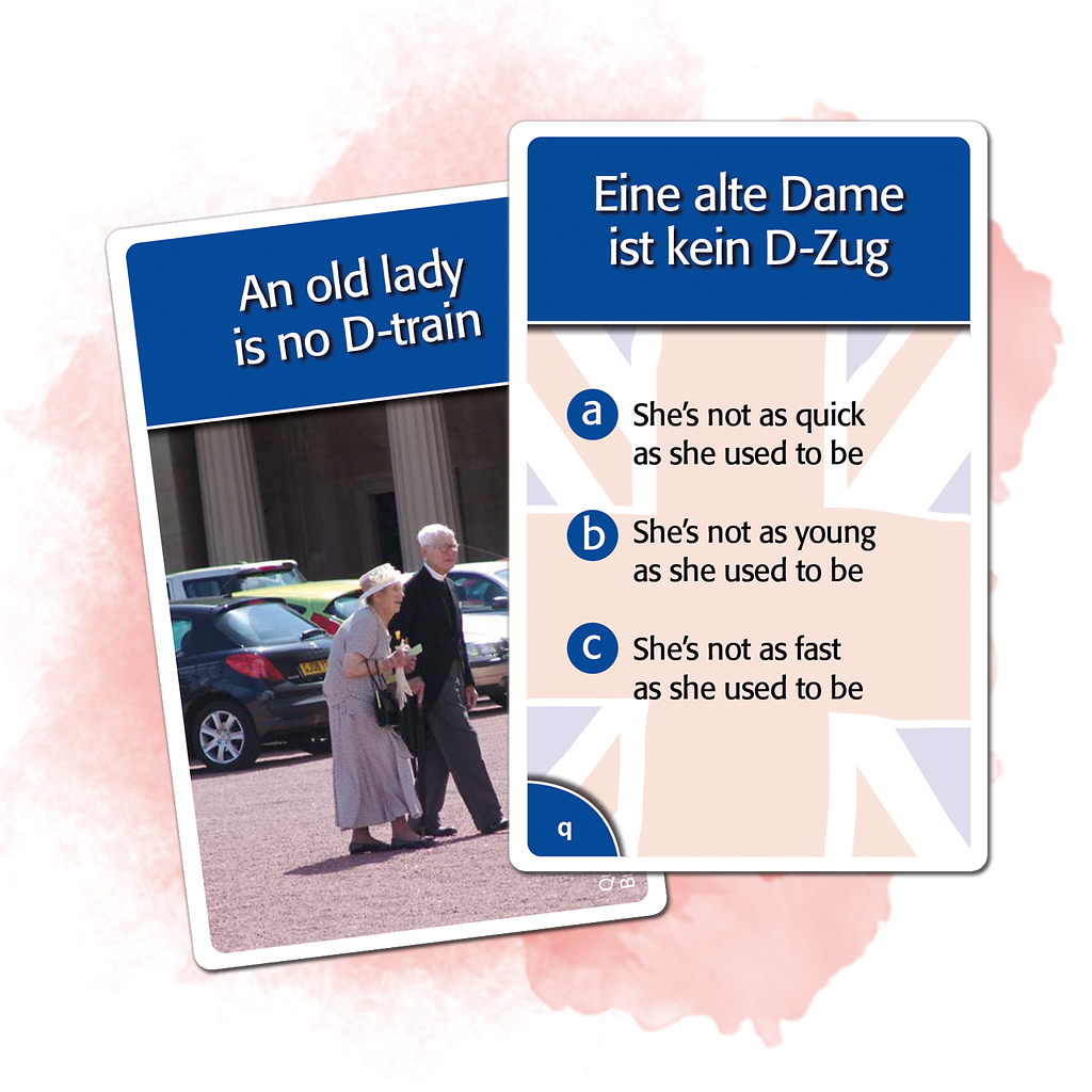 + Reihum wird der denglische Spruch ins Deutsche übersetzt.
