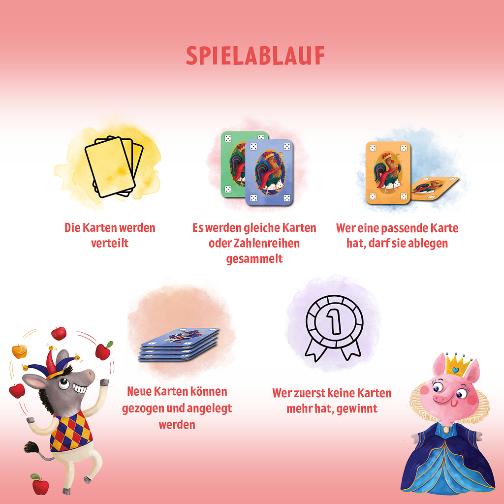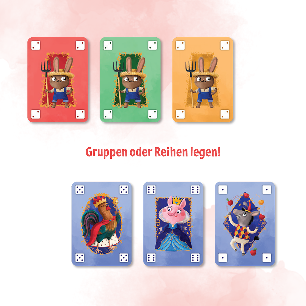 Mit Rommé für Kinder wird der Klassiker für junge Spielefans zugänglich. Die liebevoll illustrierten Karten erleichtern den Einstieg und sorgen für jede Menge Spielspaß.