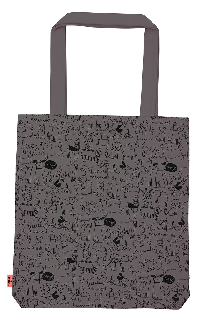 Ob Dackel, Pudel oder Labrador – auf diesem Shopper tummeln sich zahlreiche Vierbeiner. Die dezenten Neon-Details setzen spielerische Akzente und machen die Tasche zu einem vielseitigen Begleiter für Alltag, Einkauf oder Spaziergang.