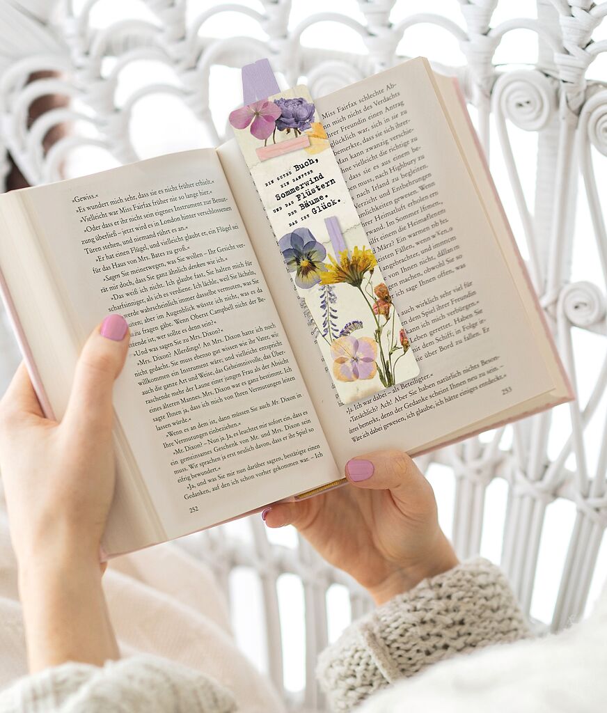 Zarte Illustrationen und ein poetischer Spruch machen dieses Lesezeichen zu einem hübschen Begleiter durch jede Lektüre. Das elastische Band sorgt dafür, dass nichts verrutscht – ideal für alle, die Lieblingsstellen festhalten oder ihre Lesepausen stilvoll markieren möchten.