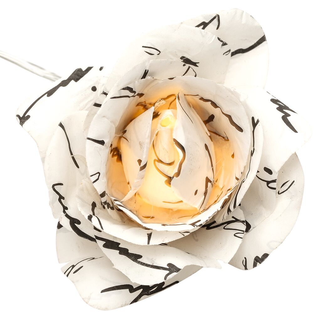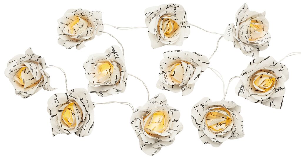 Diese Lichterkette bringt leuchtende Poesie ins Regal, ans Fenster oder auf den Schreibtisch. Jede der zehn Rosen ist aus bedrucktem Papier gestaltet und erinnert an aufgeschlagene Buchseiten. Die warmweißen LEDs schaffen eine gemütliche Atmosphäre – perfekt für kleine Auszeiten mit Lieblingsgeschichten. Dank der Timer-Funktion schaltet sich die Lichterkette jeden Tag zur gleichen Zeit ein und leuchtet für sechs Stunden.